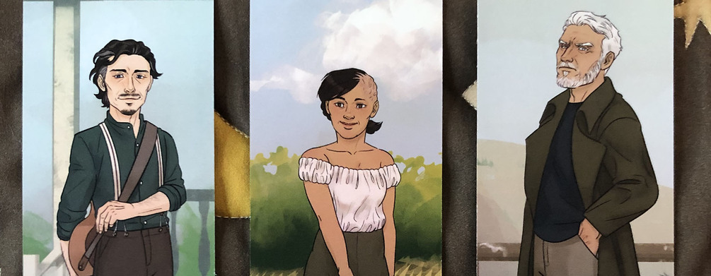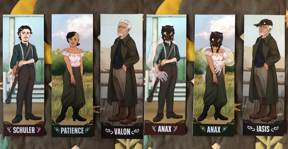 Set of 3 double-sided bookmarks featuring the main cast from the novel Secunda